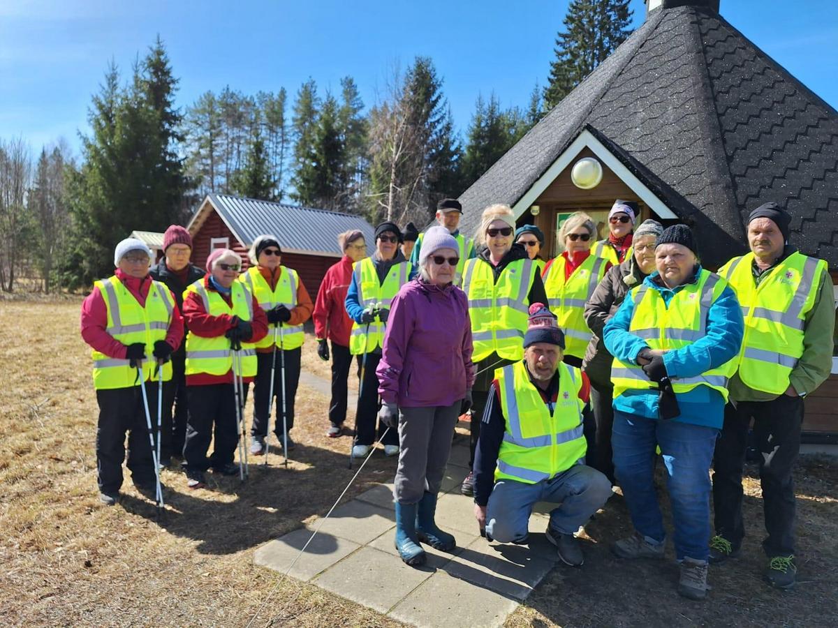 Sulkaman ja Kaatamon ikiliikkujat 27.4. Kaatamon kyläkodalla lähdössä lenkille.